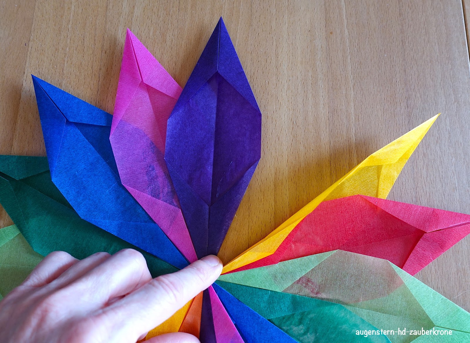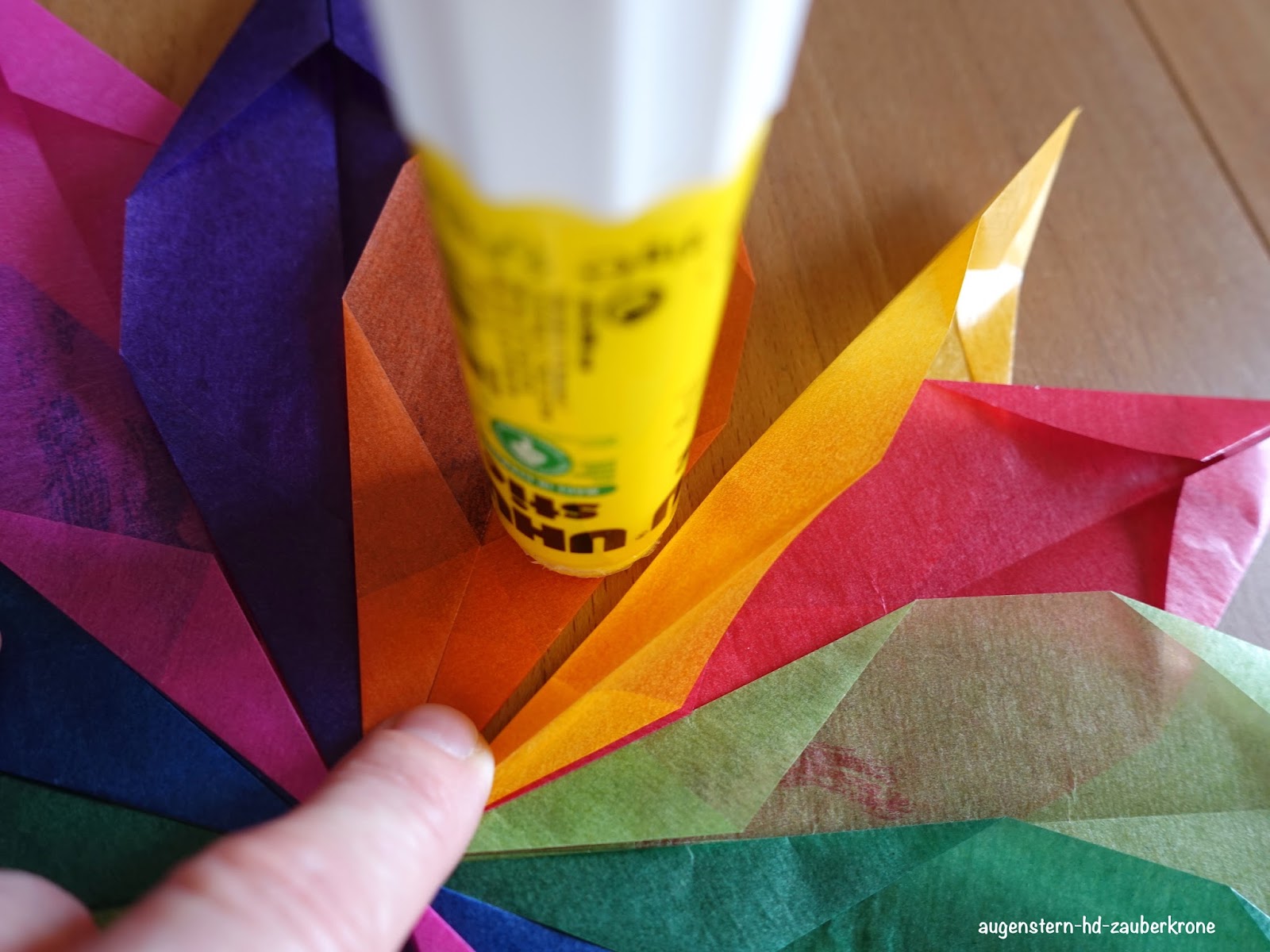 Und, beim letzten Zacken unter den danebenliegenden Zacken festkleben.