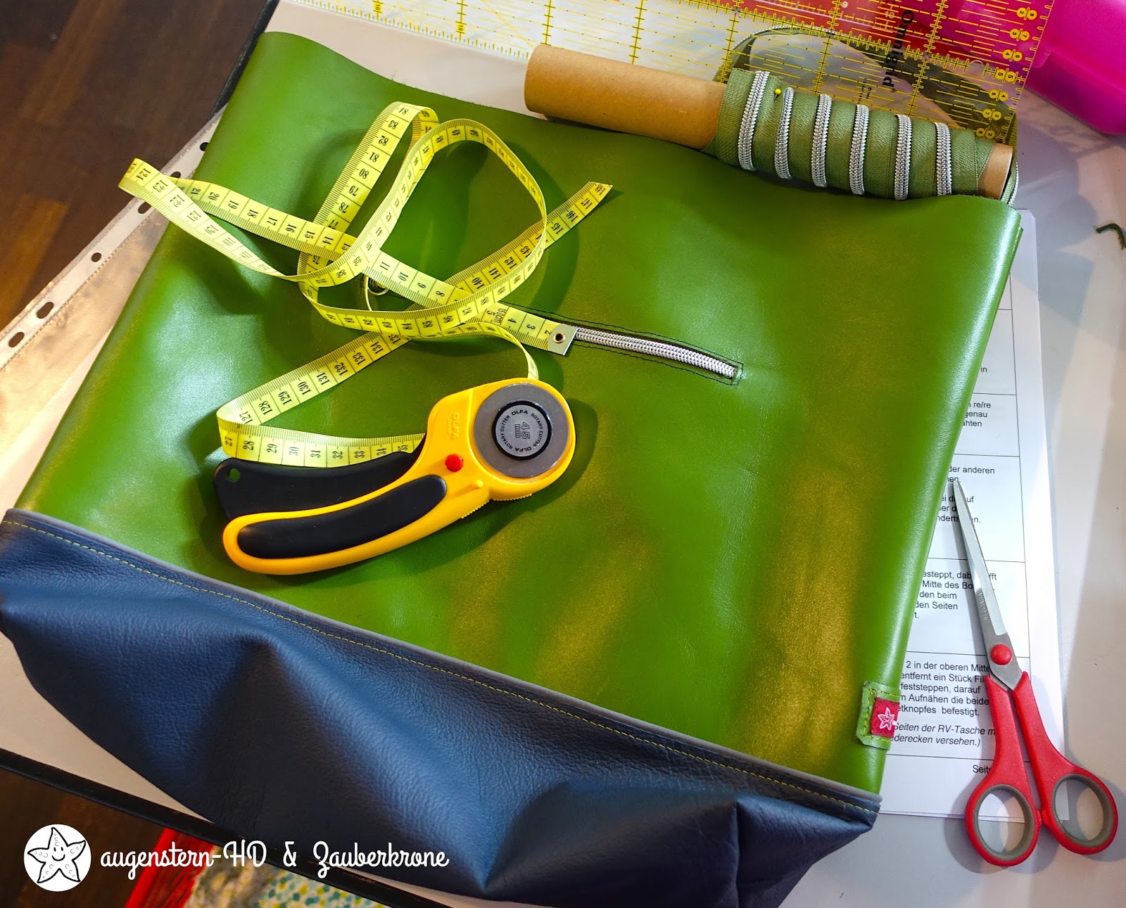 Über Instagram kommunizieren wir miteinander (@frau_machwerk) und sie schickte mir Fotos von Ledern zu, die sie vorrätig hatte. Der Farbton heißt: Greenery {PANTONE – Farbe des Jahres 2017}. Welch ein Handschmeichler, ich musste fast einen Schritt zurücktreten, als ich das Leder life sah. Wow, daraus würde ich mir eine Handtasche nähen. Was für ein Glück!
