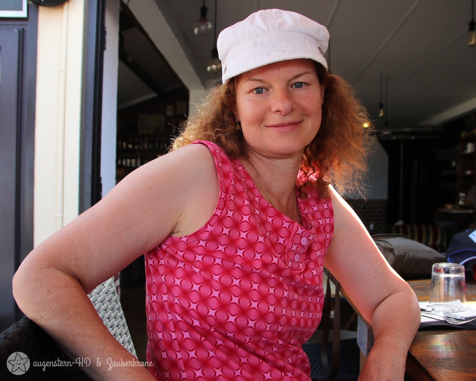 Das Oberteil-Bildchen hatte ich ja schon am ersten Urlaubstag bei Instagram zur Umfrage vorgestellt. Da waren die Knöpfe noch nicht dran, weil ich mich mit der Farbe nicht entscheiden konnte.