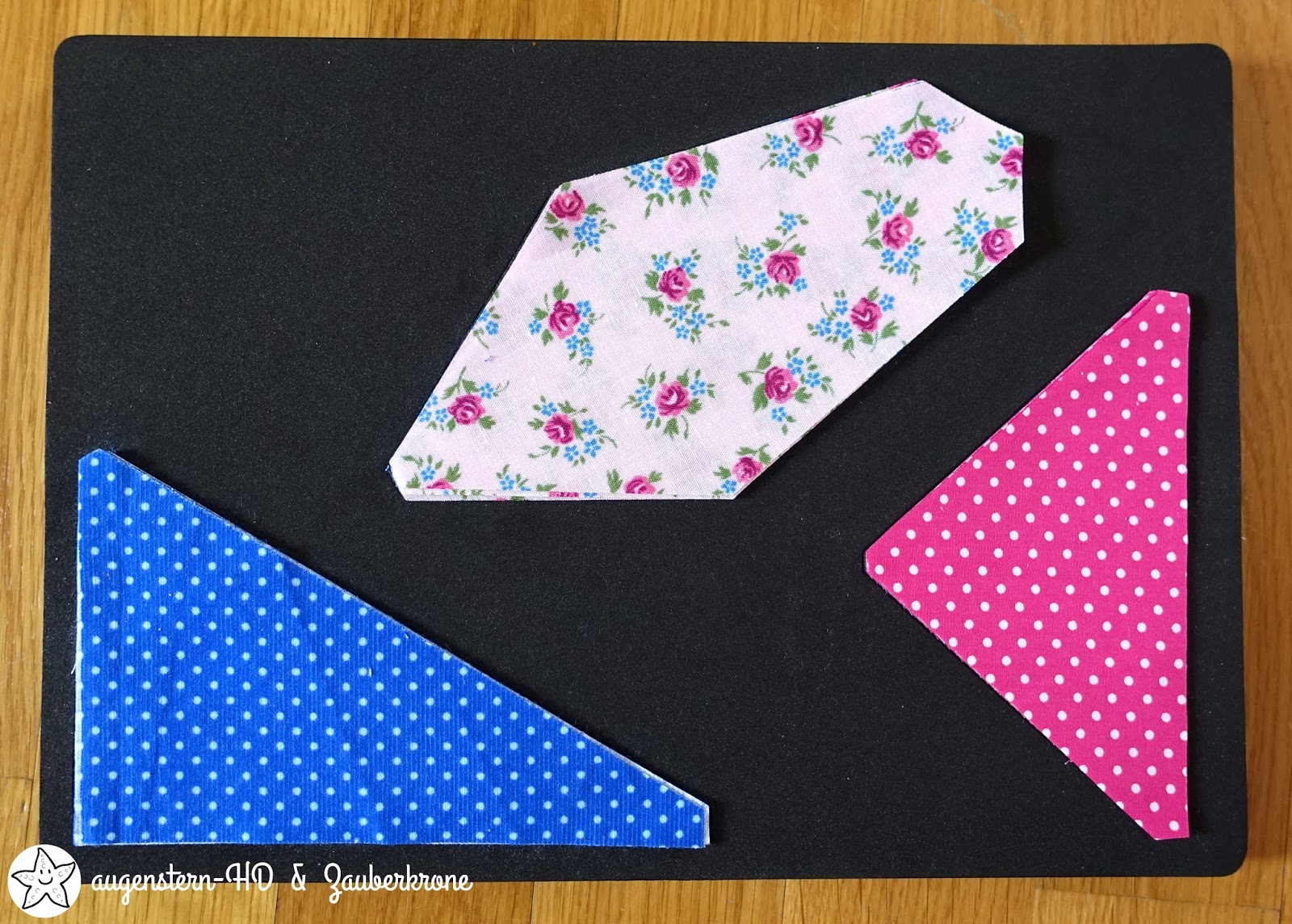 Schaut mal, sieht das nicht interessant aus? Dann fix zusammengenäht und gebügelt, auf dem Mini-Bügelbrett.