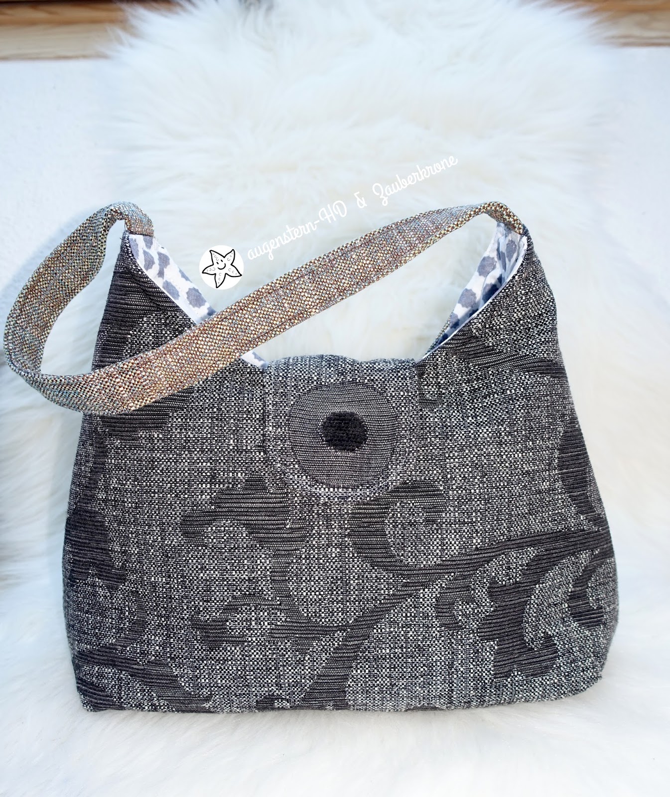 Habt ihr auch schon einmal im Gardinengeschäft nach ausrangierten Stoffmustermappen gefragt? Auf dem Heidelberger Herbst kam ich so zu zwei wunderschönen Exemplaren und für eine ganz liebe Freundin nähte ich vor ein paar Wochen eine Phoebe Bag daraus. Die englische PDF Anleitung (Freebie) entdeckte ich bei Rebekka Lambert.