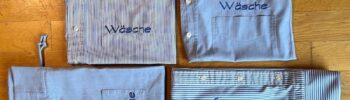 Ich mag Ordnung – besonders unterwegs! Und weil auch getragene Wäsche hübsch verstaut sein möchte, nähe ich mir gerne Wäschesäcke. Ausgemusterte Oberhemden eignen sich dafür wunderbar: Sie sind leicht, sehen schick aus und sind viel zu schade zum Wegwerfen.Heute zeige ich dir, wie ich aus einem aussortierten Hemd einen praktischen Wäschesack genäht habe.