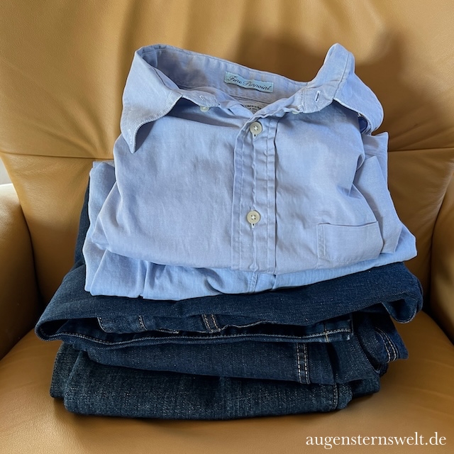 Nun, bei mir wurden wieder Jeanshosen und schon wieder Oberhemden „verwertet“. Im letzten Jahr hatte ich Wäschebeutel aus Oberhemden gezaubert. Zum Tutorial bitte *hier* entlang.
