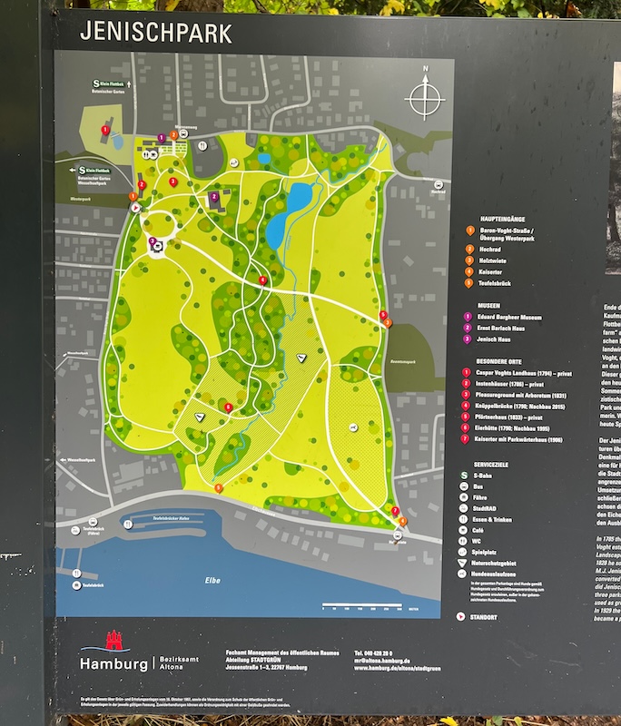 Wir kauften Tickets für das Museum im Jenisch Park, im Hamburger Stadtteil Othmarschen, nahe der Elbe. Die alte Villa ist wirklich schön ausgestattet und voll mit Geschichten der Vergangenheit. Und, der Park ist einer der bekanntesten Landschaftsgärten in Norddeutschland, also wirklich sehenswert. Im September waren wir in England, dort hatten wir schöne Gärten besucht. Dass wollten wir auch in Hamburg tun.