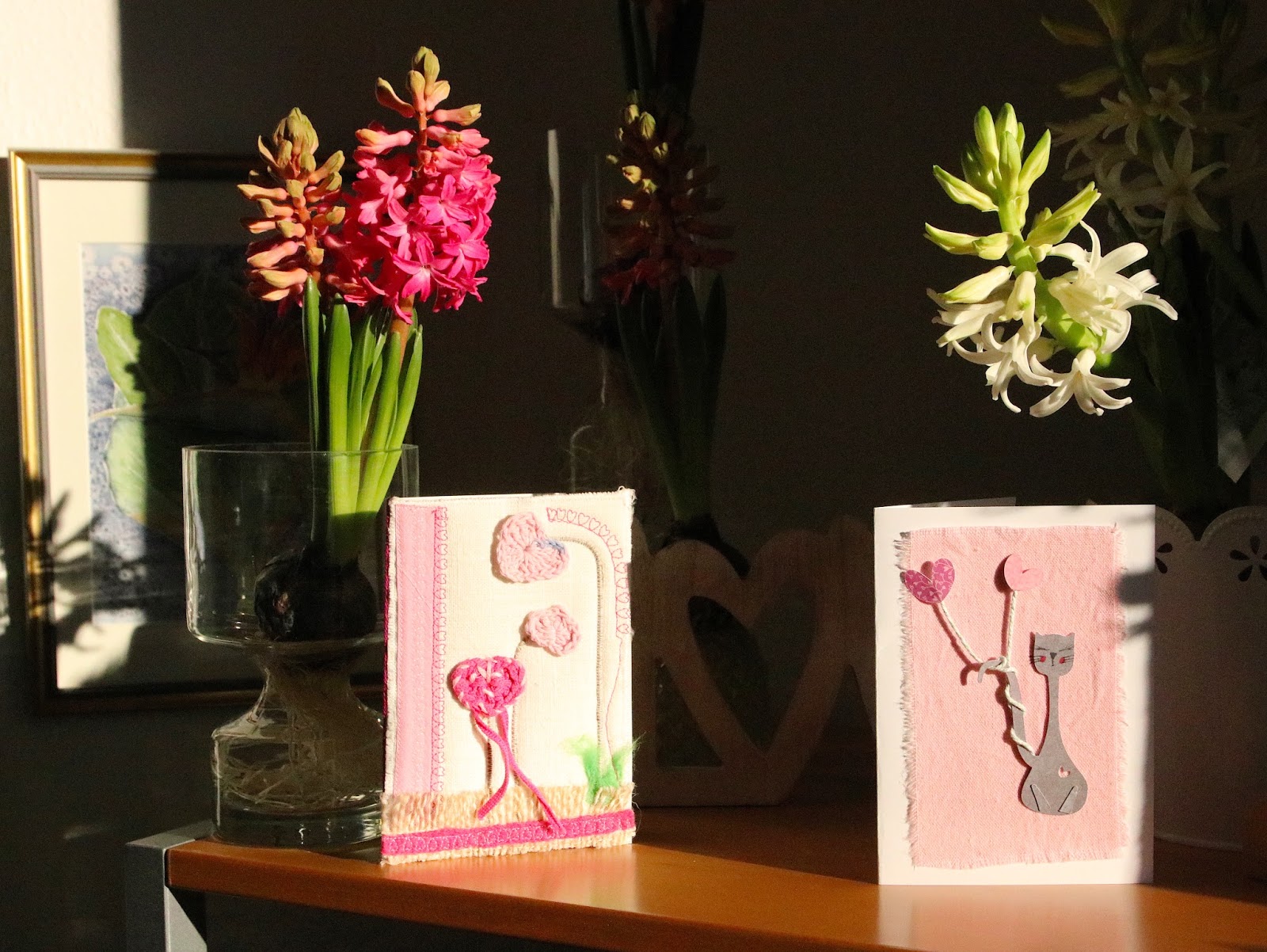 hmmmm der Hyazinthenduft ist ein Genuss und die Farbe eine wunderschöne Augenfreude ;-))) Ich freue mich mit Dir über die bezaubernden Herzensgrüße, die Dir ins Haus flatterten…