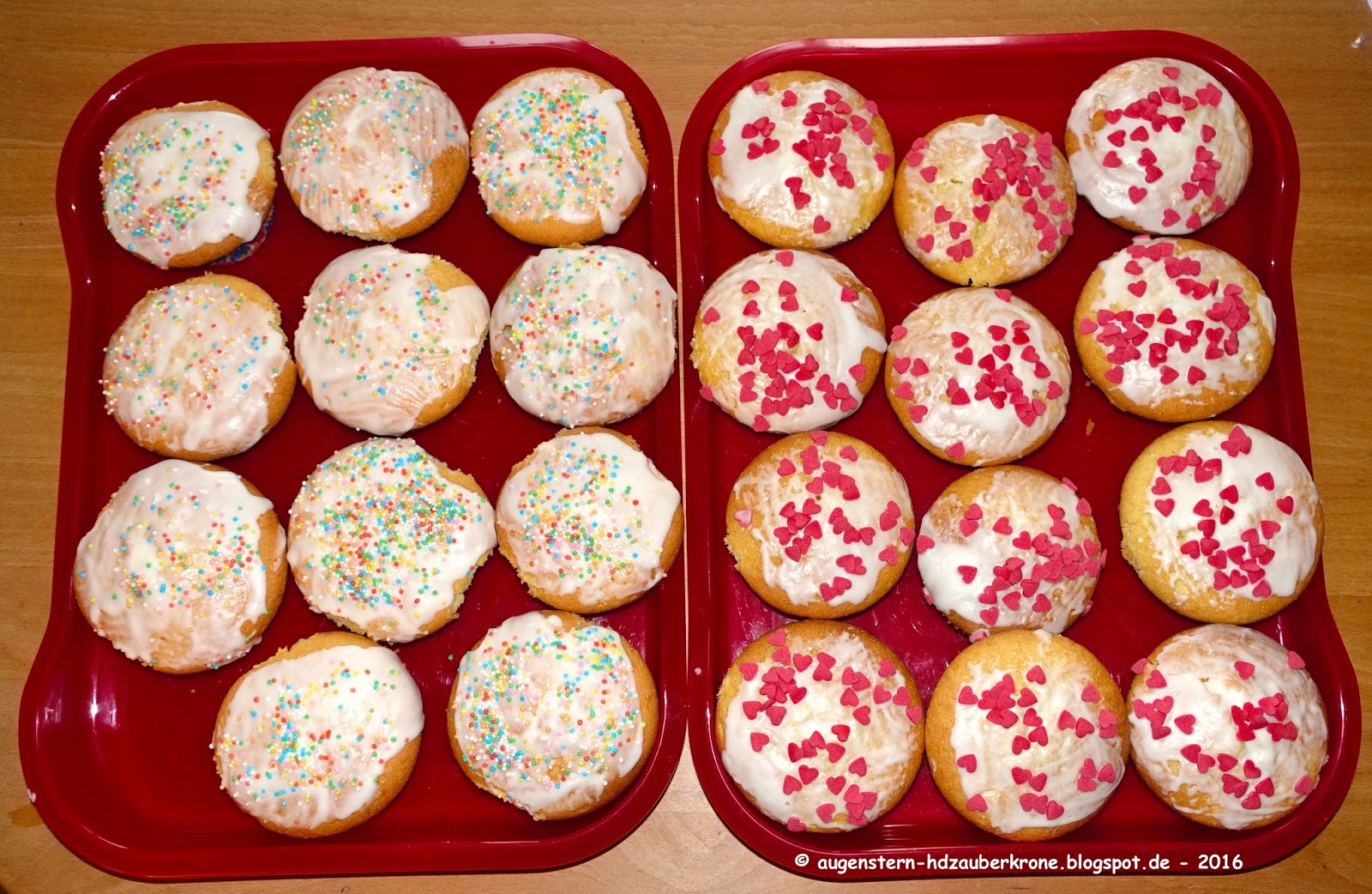 Für die Party gab es noch etwas Selbstgebackenes, auch das gehört ja dazu. Mein Mädchen hatte sich wieder die leckeren Zitronen-Muffins von mir gewünscht, die ich ihr auch schon diese Woche für die Schulklasse gezaubert hatte. Hmm, die haben sogar mir sehr gut geschmeckt. Die letzten gab es heute morgen noch beim Frühstück. Total lecker 🙂