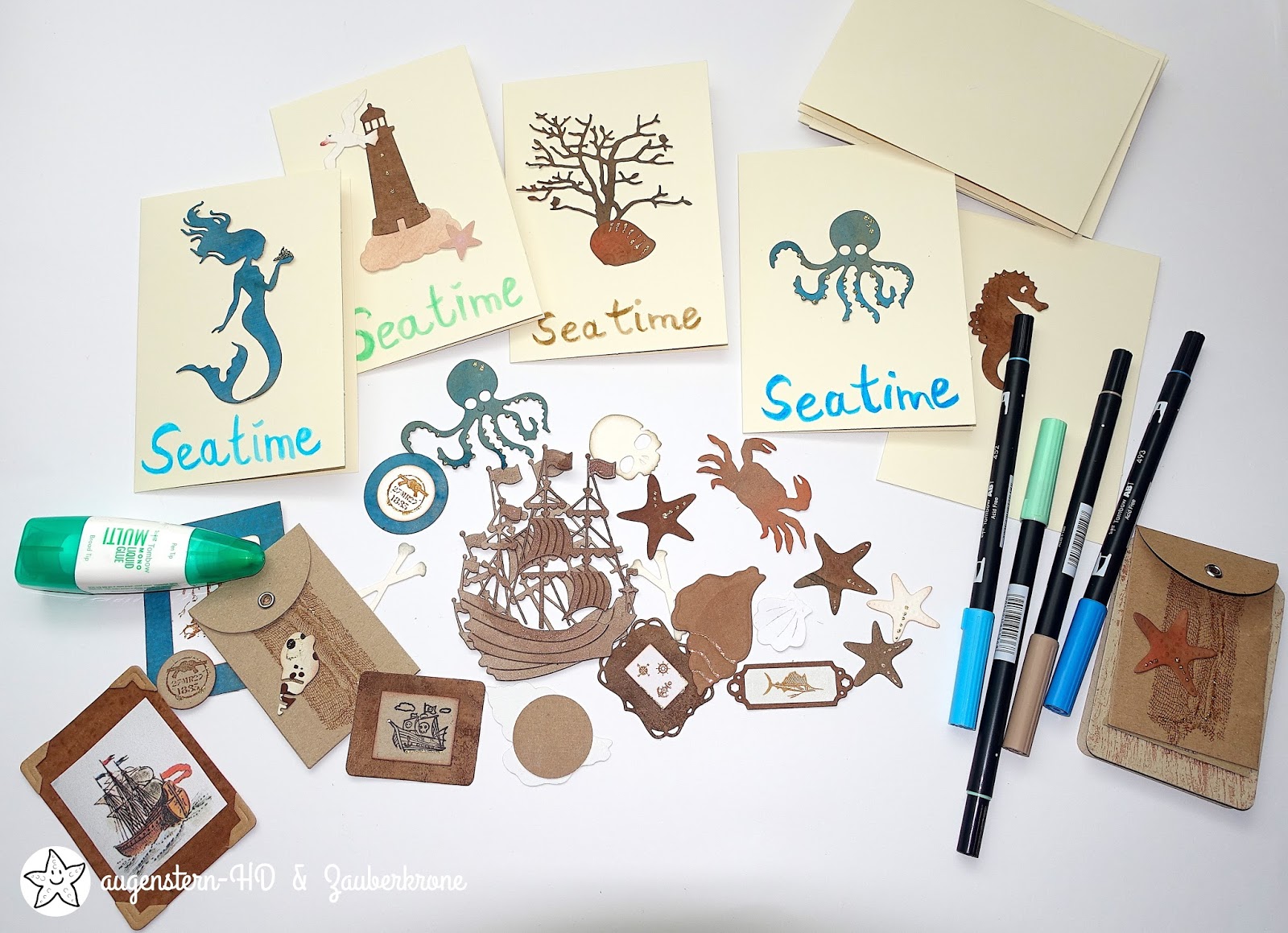 Zu Zeiten von Plottern und Handlettering musste ich einfach in mich gehen, um für mich die richtige Gestaltung umzusetzen. Einen Plotter habe ich ja nicht, deshalb hatte ich mir für diese Sommerkarten in einem Bastelshop gestanzte Teile besorgt, die ich ganz nach meinem Gusto auf die Karten arrangieren konnte.