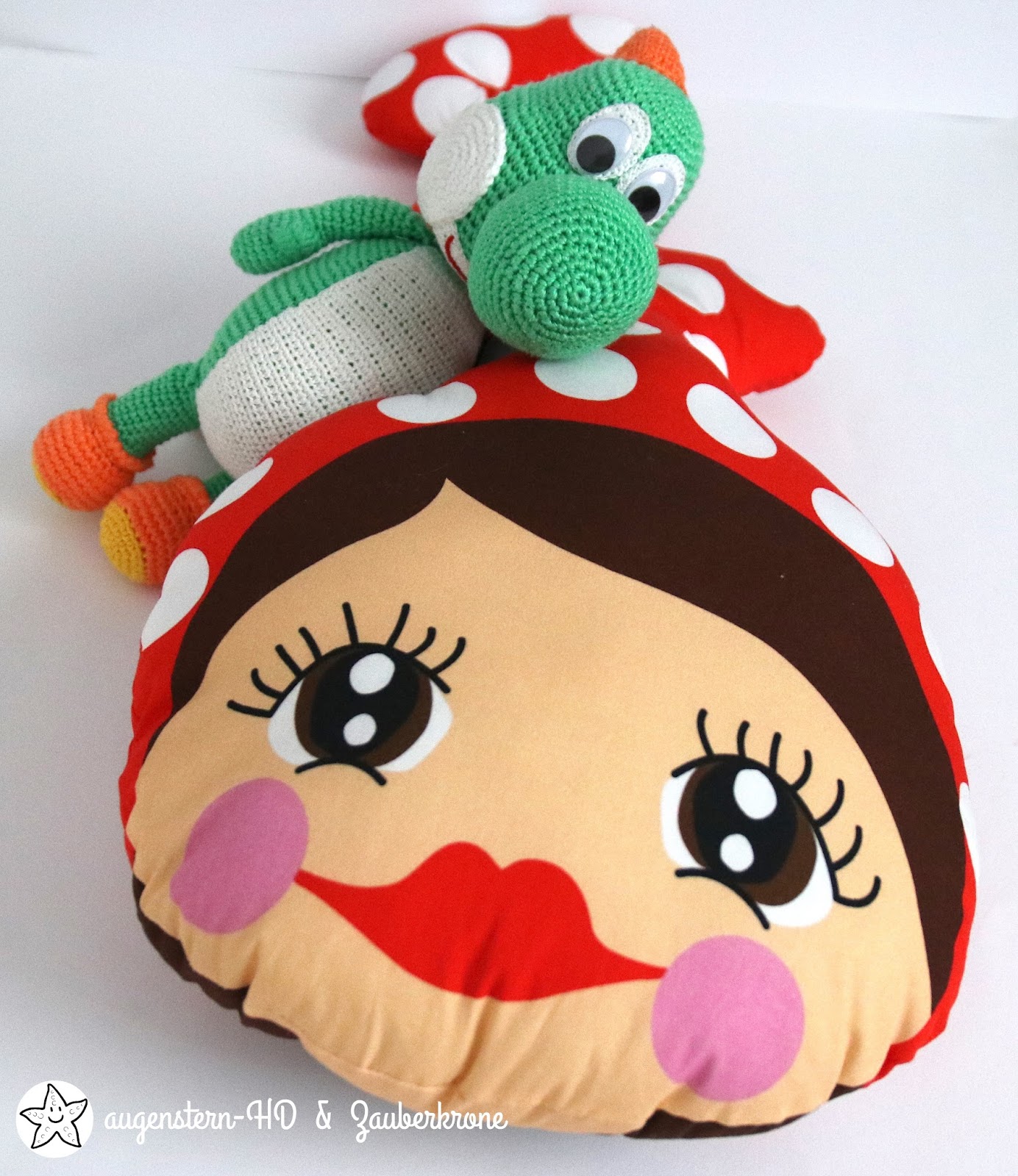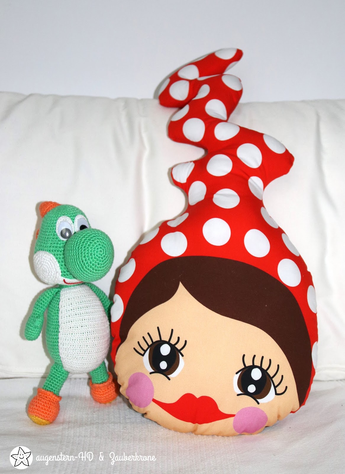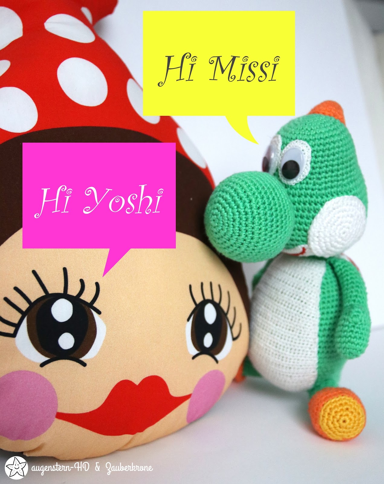 So was nettes! Der süße Yoshi von Rosi und das Missi Kissen von dir. Sonnige Grüße aus Wien.