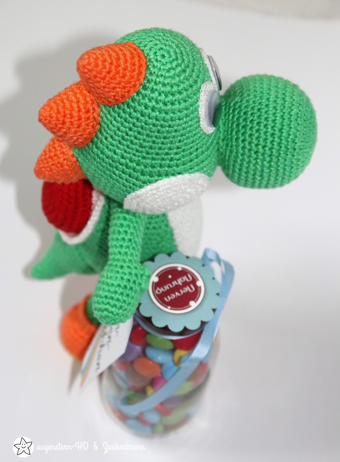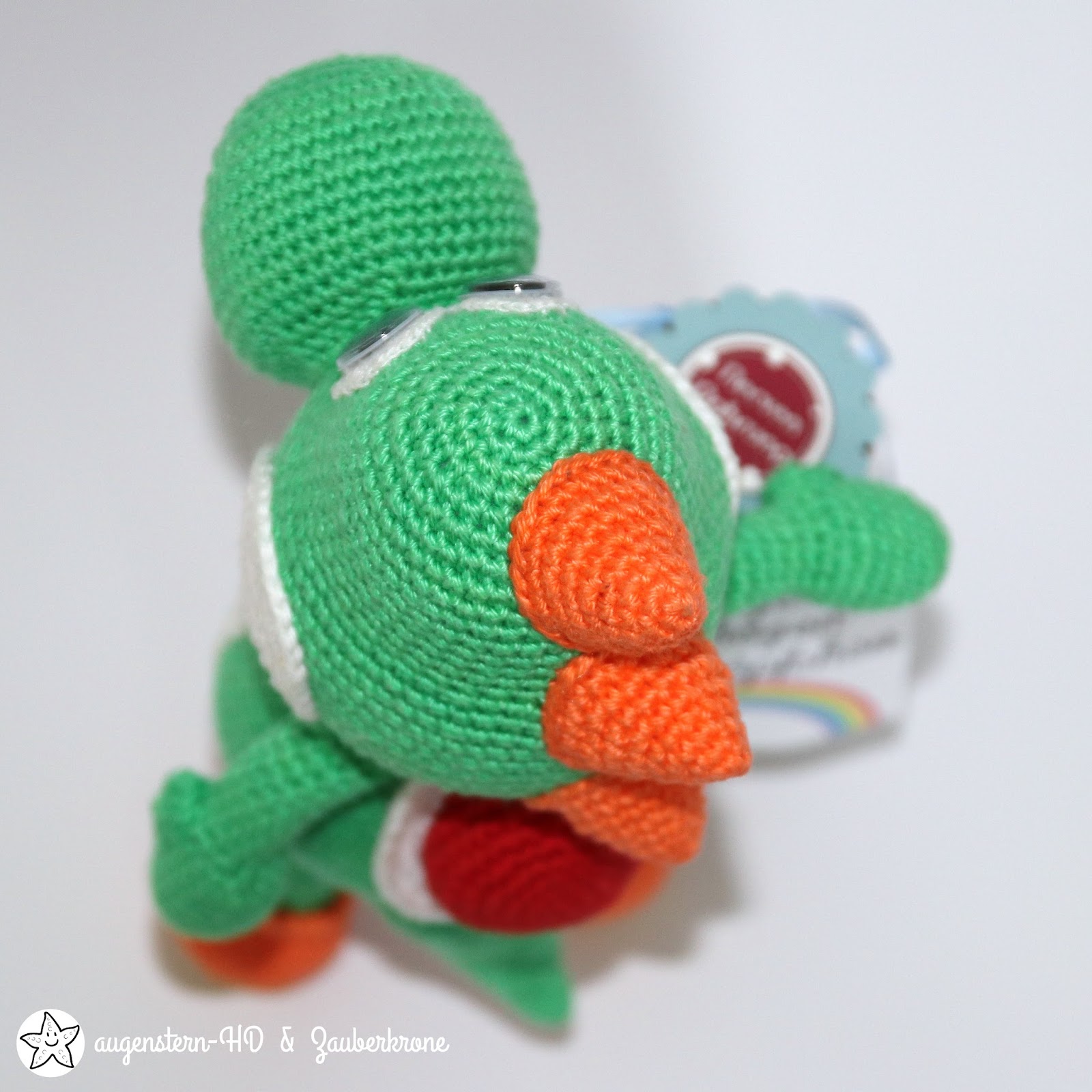 So sieht der Yoshi von oben aus, wie filigran er gehäkelt ist. WOW!!!