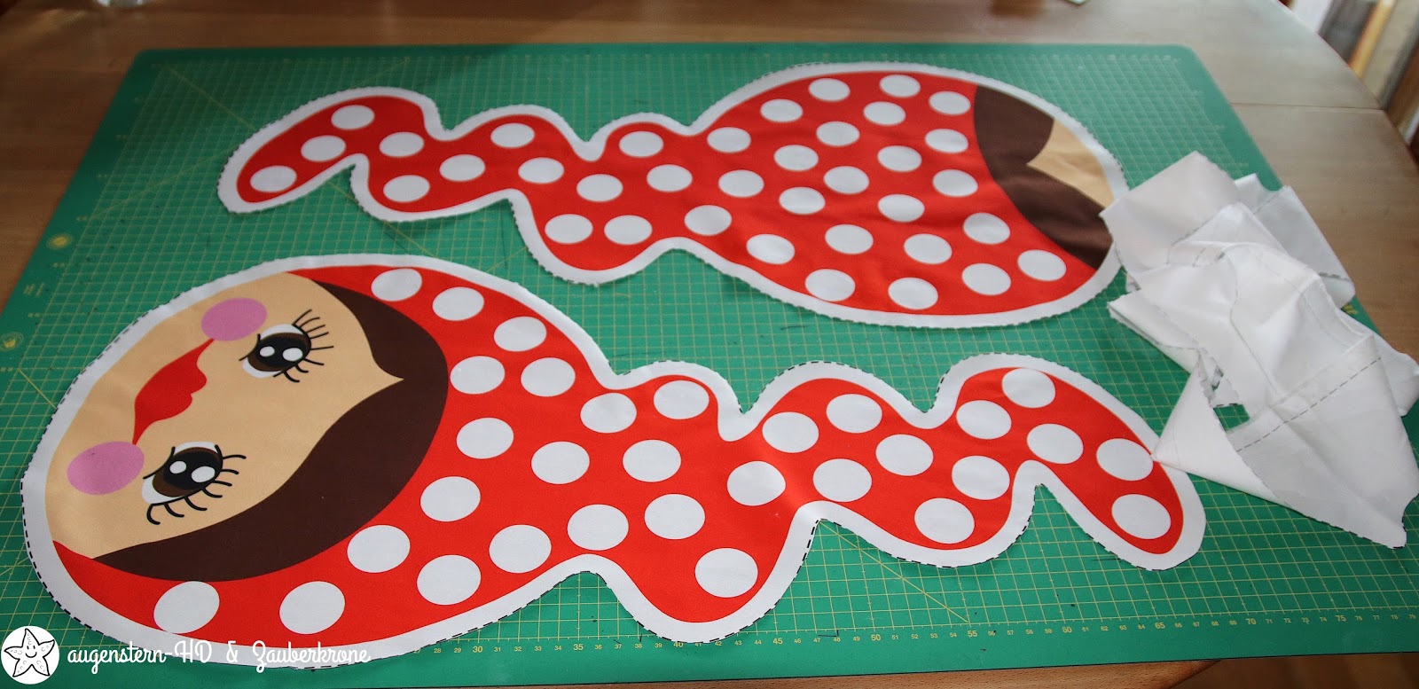 Doch ganz schnell war die Missi zusammengenäht. Aber ganz fertig war sie dann doch noch nicht. Ganz schlaff und schlapp sah sie ohne Füllwatte aus.