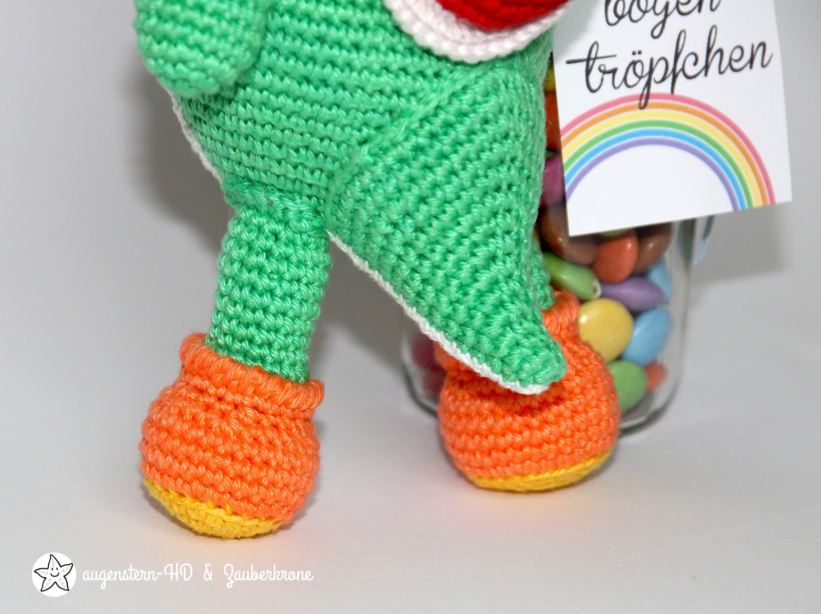 „Lieben Dank auch für die Regenbogentröpfchen“, lässt der Sohnemann ausrichten. Das Glas steht immer noch genauso im Kinderzimmer, weil er schokoladen-phop ist, so hält das schöne Glas Jahre.